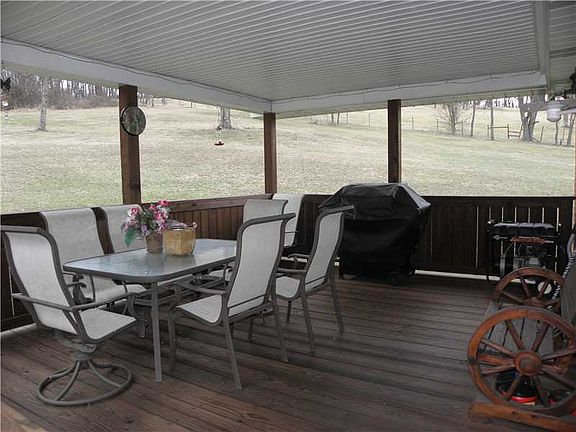 Over 10 MOSTLY PRIVATE ACRES in Country Setting close to town! Spacious Split w/ Gorgeous GmRm featuring a Beautiful Brick Log Burning Frplc. Glass French Drs to Private 17x13 Cov'd Back Porch. Skylight in Main Bath w/ Cathedral Ceilings. All Wood Doors. Well built 42x26 Stone Barn w/ electric, could be add'l Grg or MASSIVE Shed! In addition, 2 car int/grg & 2 car HEATED Det/Grg w/ Concrete Flrs. Spring on property + well feeds into cistern tank for outside water. Seller ONLY retaining 60% Gas Rights!!!!