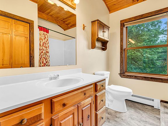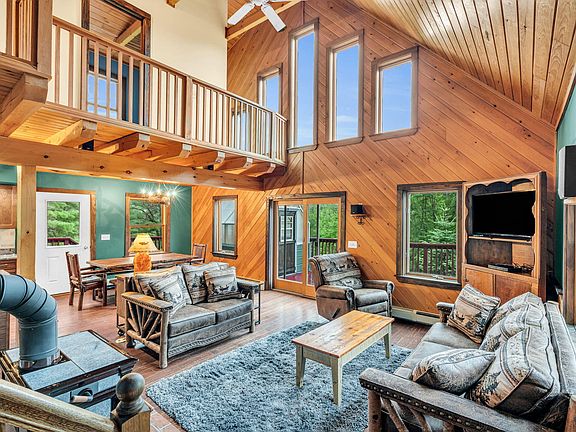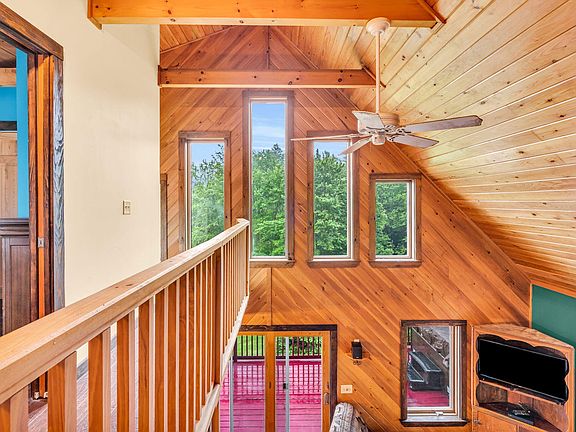Welcome to this stunning 3-bedroom chalet nestled on a sprawling 47-acre property, offering unparalleled privacy and serenity. This exquisite home features 2.5 bathrooms, a finished basement, and a spacious 2-car garage with additional space to finish above, perfect for a home office, gym, or guest suite. As you enter the property, you'll be captivated by the spectacular wrap-around deck, providing ample space for outdoor entertaining, relaxation, and soaking in the breathtaking views of your private estate. The interior boasts a warm and inviting atmosphere with an open-concept design and high-quality finishes throughout. The gourmet kitchen, equipped with modern appliances and ample storage, flows seamlessly into the living and dining areas, perfect for gatherings with friends and family. For the ultimate in relaxation and rejuvenation, the property features a luxurious sauna and a private outdoor hot tub, creating your very own wellness retreat. The green thumbs in the family will delight in the well-appointed greenhouse, perfect for year-round gardening. This extraordinary 47-acre sanctuary promises peace, tranquility, and an unmatched lifestyle. Don't miss this rare opportunity to own a piece of paradise.