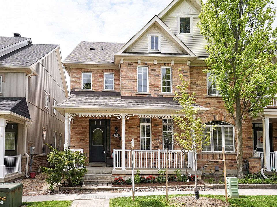 Welcome to 62 Dancer's Drive, a beautiful all brick end unit townhome in the sought after original Angus Glen community. Bright end unit with side windows. Featuring 9-foot main floor ceilings, elegant hardwood floors, and a bright open concept layout, this home offers the perfect balance of style and functionality. The dining room showcases a coffered ceiling for added sophistication, while the spacious kitchen opens onto a generous and bright family room with a gas fireplace and a walkout to a private, interlock patio - ideal for outdoor entertaining. Private front porch. Upstairs, the spacious primary suite boasts a walk in closet and a luxurious 4 piece ensuite with a jacuzzi tub and separate shower. Enjoy the convenience of second-floor laundry and an unfinished basement offering endless potential. Located just minutes from top rated schools (Pierre Elliot Trudeau H.S, Unionville College, and Angus Glen Montessori, York University campus at Kennedy and 407), and lifestyle amenities like Angus Glen Golf Club, rec centre, library and historic Main Street Unionville. Quick access to HWY 404, HWY 7, HWY 407, YRT & GO train stations for seamless commuting. This is an exceptional opportunity to enjoy comfort and convenience in one of Markham's most prestigious neighbourhoods. Great walking neighbourhoods with several parks and ponds. Updates include: Furnace and garage door (2020), fridge (2016), hardwood, shingles, dw (2014), ac (2012).