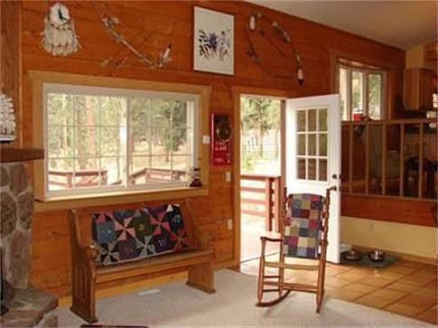 Rare charming log home in highly desirable Woodside. Welcome to this beautifully updated home - wonderful Kitchen, granite, upgraded appliances & cabinetry, antique built in china cabinet too, breakfast room overlooking the great room with vaulted ceilings, rock fireplace & deck access. The dining room comes with another rock fireplace - perfect for candlelit dinner parties. The family room is just a few steps away - more vaulted ceilings & loads of storage. The home offers 3 bedrooms, full guest bath & main level laundry room. The master suite has a private bath with spa tub & separate shower. Attached 2 car garage plus plenty of extra parking. A large utility shed/workshop is just steps from the back deck. 2 lovely and almost flat acres provide ample room for pets or horses and lots of play room too. The entire property is fenced. Horse friendly community with riding arena & trails.