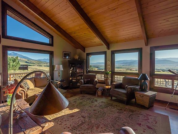 Nestled near the base of the Absaroka Mtns in the desirable Paradise Valley, Deep Creek Bench is just 8 miles South of the Historic town of Livingston. Properties with this acreage, so close to town yet remote, not in a subdivision or HOA & with no known covenants, rarely become available. This 20+/- acre property offers a custom 5 bedroom, 3 bath, two level ranch style home with everything you need on the main floor. The large wrap around deck with barn wood bar & pergolas allow you to enjoy huge Absaroka Mtn, Paradise Valley & Yellowstone River views. The home sits well off the road, accessed by a paved circular driveway for maximum privacy & boasts a welcoming covered front porch, stone entry, walnut floors, moss rock stone walls, double sided fireplace, vaulted wood ceilings, Milguard windows, Alder doors, att 2 car garage, fenced yard for dogs, shop w/back-up generator, 2 RV hookups, 7 stall barn, loafing sheds & cross fencing. Just 48 miles from YNP & only 35 miles from Bozeman.