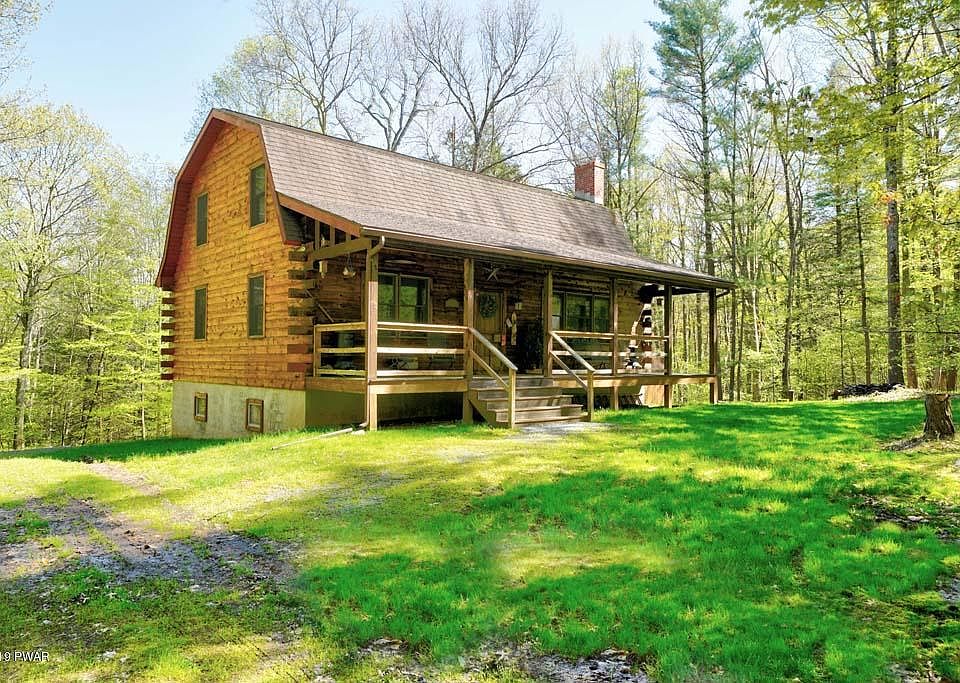 Here's your cabin in the woods on 6 acres!! Beautiful log home with an open floor plan, fireplace in living room, family room/den on main level, 3 bedrooms, 2 full baths, spacious loft and more! A quiet setting but close to town and Lake Wallenpaupack! Covered front deck, fire pit in private back yard and more!
