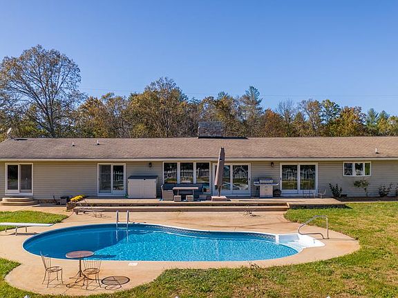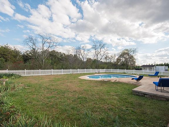 Your family will love this home! Close to town with an 'end of the road setting' this ranch style home sits on a level 1+ acre lot w/ garden space & a white picket fence surrounding the pool & deck area. The living room has a stone FP (w/ blower) and sits between the dining room & the foyer on the front of the house with a wall of windows to let in lots of natural lighting. Along the back facing the pool is the kitchen, breakfast room, large family room w/ vaulted ceilings & exposed beams and a 2nd stone FP. These rooms have sliding doors to the pool & the family room has a wall of windows & glass doors leading to the pool. Down the hall are two bedrooms on the front and 2 bedrooms on the back of the house and the master has sliding doors leading to the deck & pool. The large laundry room has lots of storage with a half bath on the back of the house and access to the garage and to the pool. The flat yard has a large established garden area and still there is plenty of room for family fun.