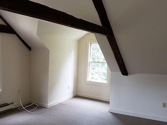 In Dover, a charming one bedroom, one bath apartment located on the top of an old farmhouse with a private front entrance. A rare find on a quiet and peaceful country road, with open beamed cathedral ceilings, many windows, skylights, and ample storage space. Conveniently located to UNH, downtown Dover and Portsmouth. Application and background check prior to viewing. The owner pays hot water. Renter pays electric & electric heat. Pets are generally not allowed but may be considered at owner's discretion. The driveway is plowed but renter must shovel the private entrance and path. No smoking or open flame candles. The apartment comes with one window AC unit. Owner-occupied first floor.