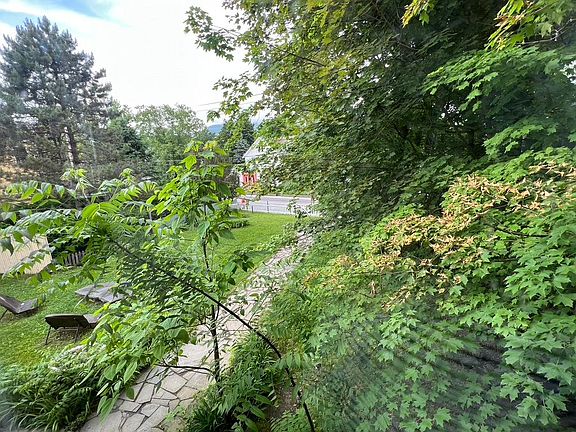 Center of Woodstock NY, 2 story 2 bedroom apartment in town yet set back from road and private..one bath with shower, spacious open kitchen and dining, living room ,and bedroom on lower floor, large bedroom and separate balcony room w futon couch upstairs .... As former air bnb .all furnishing is provided, bedding, towels ,dishware, cookware etc. small outdoor deck, seating area...easy parking availability...or its on the bus route from nyc.... utilities are included for the summer rental...this inclludes electric, water and sewer and heat (may need in september and heats the water....lease is from now through labor day....could extend for more months and through the winter at lower rental cost