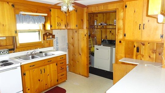 2 bed, 1 bath, laundry, natural gas hot water heat, all knotty pine interior, nice bright family rm, perma log exterior, 12 x 16 storage shed $ 34,000 A-2432