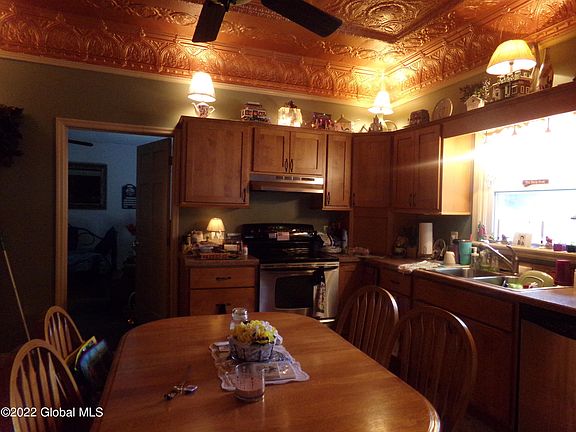 Nice 3 bedroom home with a handicap accessible full bath on 1st Floor with 2 Car Garage. Living room w/open staircase. Newer kitchen with original metal ceiling. There is a formal dining room, currently used as a bedroom. 2nd Floor has 3 bedrooms and there could be room to place another bathroom if a buyer needed or wanted a 2nd Bath. Natural gas boiler for heat and natural gas hot water heater. Circuit Breaker Electrical Panel Box is 100 amps. Basement with stone foundation is deep in height. Nice double lot. Near Hospital and Golf Course. Easy access to highways. Annual taxes are estimated to be $3,974 with No exemptions. 24 hours notice for showings. Conventional or Cash Buyers only. Being Sold ''As Is''.