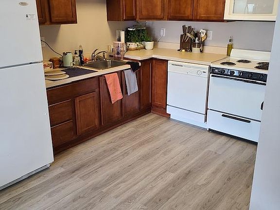 Immaculate and modern apartment with large eat in kitchen (includes fridge, stove, dishwasher and microwave). living room, bedroom and bathroom. Central AC, new floor, freshly painted. Elevator building in heart of town within walking distance to shopping and restaurants. Laundry on premise. Off street parking for one car included. One year lease. Tenant pays electric. One off street parking sticker included. Cats and small dogs allowed with a $250 non refundable pet security and additional monthly rent of $25 for a cat and $50 for a dog. In unit laundry offered at additional $75 per month.