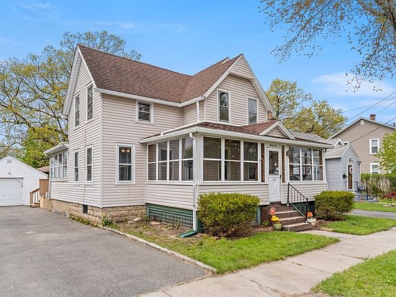 Back on the Market! Buyer got cold feet! Their loss is your gain! Welcome home to this 4 bedroom, 1 bathroom, 1,100 square foot colonial. The first floor has the living room with wood floors and ceiling fan, 1st floor bedroom with wood floors, ceiling fan and built-in bookshelf, and the full bathroom off of the eat-in kitchen. The second floor has three bedrooms all with wood floors. Additional features include, enclosed front and back porch, wood deck, fenced in yard and a one car detached garage.