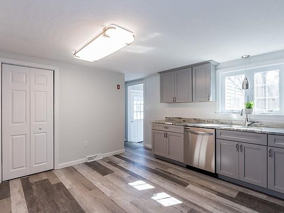 Open House Sunday March 8th 11:00- 12:30. Completely renovated 3 bed, 1 bath Ranch located on dead end street with easy access to major highways. Eat in kitchen with new soft close cabinetry, granite countertops, pantry, stainless steel appliances and easy care vinyl plank flooring.First floor laundry. Renovations include - new roof,siding, windows, interior and exterior doors, kitchen, bath, septic system, upgraded electric and addition of central air. Two sheds for all the outdoor equipment, and a large back yard. Area of yard that was disturbed by installation of new septic will be loamed and seeded when weather permits.