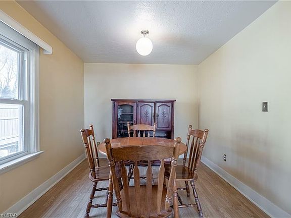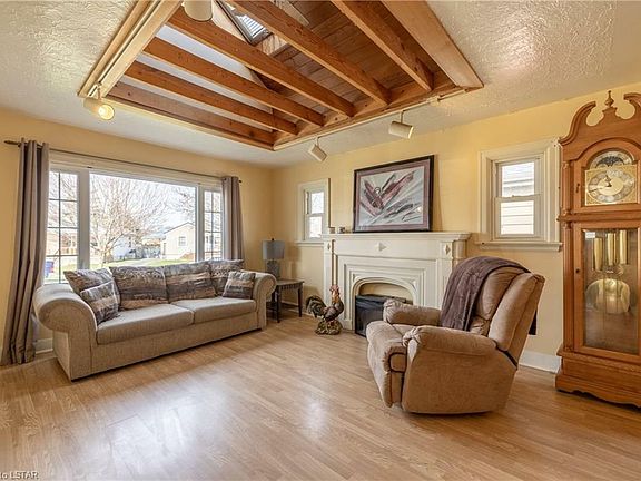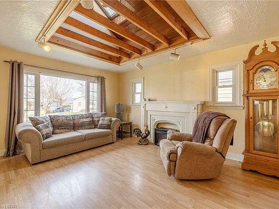Great solid bungalow close to the highway and many amenities. This spacious layout is functional and convenient! The main floor bedrooms are a fair size. The larger kitchen has a side entrance, that also accesses the year yard, and is open to the large living room and separate dining space. Lots of natural sunlight in this home! Basement would allow two large living spaces, a storage area and a second full bathroom. The backyard is large and fenced, with a patio and awning, and can be turned into something very special! Make this house your home. There is great potential in this home, that allows you to move in and make it your own! Located at the end of a quiet street, and close to a park and greenspace, come and view today!