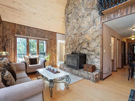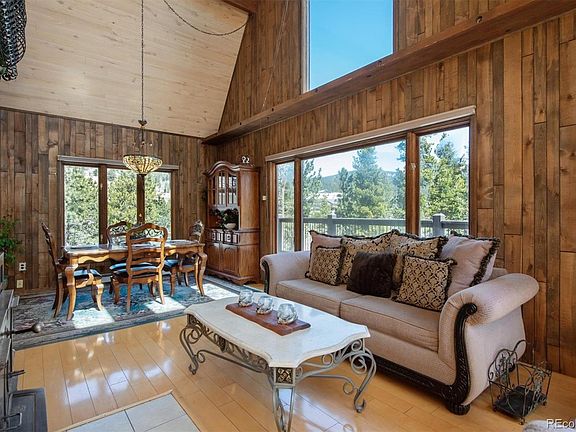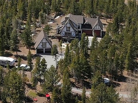 Beautiful, lake-front home with trophy trout right out your door. Have all the enjoyment of a mountain home, yet still be close to services, travel corridors, and many great attractions. This impressive Mountain Chalet was enlarged and renovated in 2011, including the huge, vaulted, primary bedroom with ensuite bath and deck. Also, a billiards room and an oversized 3-car attached garage with XL doors for a motor home and tall 4x4s, and an overhead 2-ton hoist. That's in addition to an oversized 2-car detached garage. Both garages are heated. Nearly all electrical and plumbing was redone. The well too, with turbo-pump and 600gal storage. The entire kitchen and butler's pantry was also redone, and new, 50-year architectural shingles were installed on the house and both garages. The T&G aspen, soaring cathedral ceilings in the front room create extra spaciousness, and the massive wall of windows showcases the lake view, the magical surroundings, and abundant natural light. The surprisingly large fireplace insert heats like a boss! A full, remodeled basement features a family room with fireplace and walks out to a lovely patio for barbecues and gathering around the firepit. Don't miss the large studio/den above the detached garage, just steps from the bustle of the main house. Be it through the generous windows all around, or the wrap-around deck or bedroom deck, enjoy an ongoing show of mountain wildlife, majestic Moose included! The site is mostly level and peppered with beautiful pines, aspens, and wildflowers. And there's a charming playhouse too. Your family and your friends will revel with you in this, your mountain paradise. Just 37 minutes from the Denver metro area, and even closer to many recreation and entertainment opportunities from hiking, biking, and skiing, to ATVing and rock-climbing, to historic old mountain towns mixed with shops and restaurants and world-class casinos too. And fishing. Or just ponder peacefully the shimmering lake through the pines.