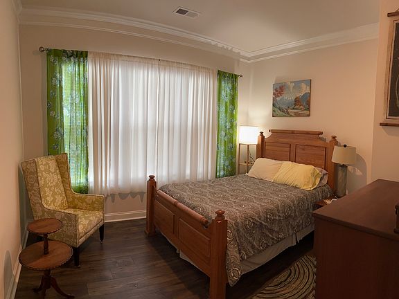 The primary suite bosts tray ceilings, a spacious ensuite bath with dual vanities, tiled walk-in shower with glass wall, water closet, and an expansive walk-in closet. Two additional bedrooms provide flexibility one with a queen bed, and another set up as an office/guest space with a sleeper sofa. These two bedrooms share a stylish second bathroom that offers a granite vanity and shower/tub combo.