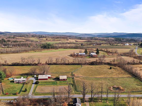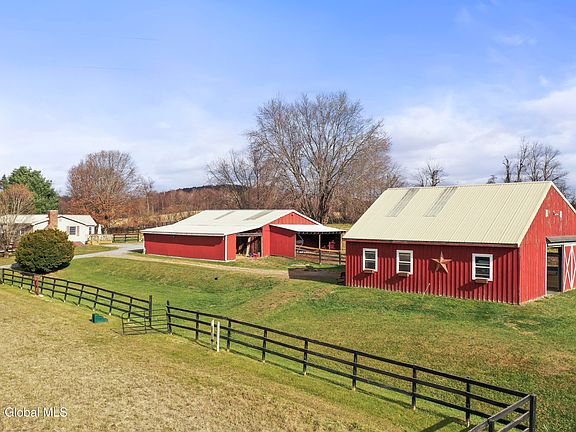 This property is a horse lover's dream, a fully equipped setup for equestrian care. There's approx. 7 acres of fenced paddocks for grazing, 2 barns, riding arena, & well maintained 3 bedroom, 2.5 bath home. The main barn includes 3 stalls, a wash stall, tack room, and hay storage with direct access to paddocks & covered run-in area. A versatile secondary barn offers a 2 bay garage, 2 additional stalls & extra space for hay/equipment storage. The charming home features an updated kitchen, dining area, living room with a wood-burning fireplace, finished basement with family room, & equipped with a 3-zone heating system, new well pump, septic with updated leach, & automatic generator. Desirable Southern Washington County location for easy access to the Capital District & Southern Vermont.