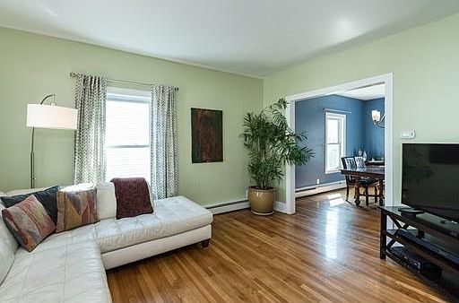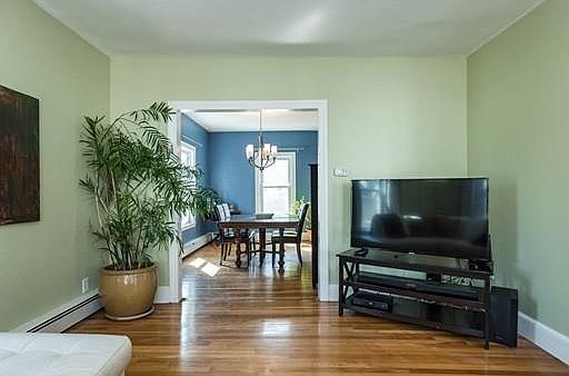 Charming three bedroom sunlit Colonial with hardwood floors throughout. The main floor features gracious high ceilings with a semi open floor plan, large living room and dining room and a spacious modern kitchen. Convenient half bath off kitchen. Two bedrooms and updated full bath on the second floor, third floor has a third bedroom and family room. A private fenced yard professionally landscaped by an arborist for your enjoyment, with easy access from the kitchen for indoor/outdoor flow. Many updates including water heater 2019, exterior paint/trim 2018, roof 2017, insulation 2017, upgrade to three zone heating system 2013, kitchen & bathrooms 2010-11. Great Roslindale location with your own driveway.