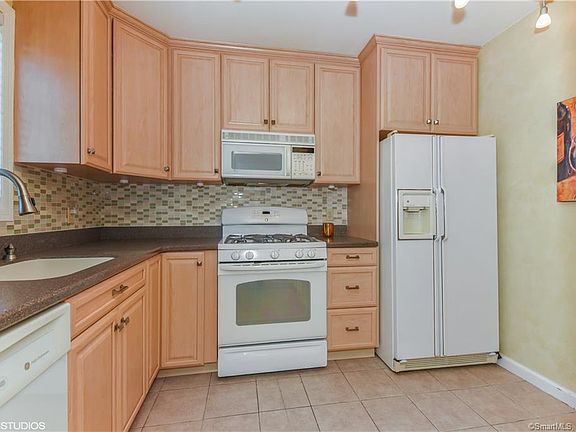 NEW HEATING SYSTEM JUST INSTALLED. Stylish, totally updated 2 bedroom end unit townhouse with 1,492 square feet of living area. Spacious, open floor plan. Living room has a lovely wood burning fireplace and sliders to balcony. Lots of windows for sun-filled rooms. Master bedroom suite with vaulted ceiling and spa tub. Desirable well maintained complex. Enjoy the in ground pool and beautifully landscaped grounds. Commuter's dream-across from the Merritt 7 train station and minutes to Merritt Parkway and I-95. Attached garage, private storage room and pull down attic make for lots of space to store your things.