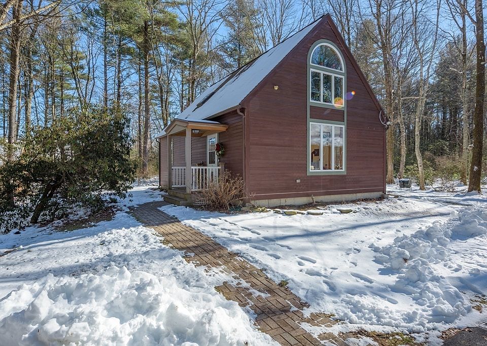 **Highest and best offers are due by 5pm on Monday 2/12** Tucked away in a private setting yet convenient to Amherst and area schools/amenities, this Kohl Construction-built cape offers the best of all worlds and numerous recent improvements. On the main level, find open floor plan living/dining/kitchen illuminated by abundant windows overlooking the yard and spacious wooded lot, plus full bath and one bedroom. Upstairs, the breezy primary suite and office (a potential 3rd bedroom) are similarly brightened by skylights. New 2-car garage (2020) offers additional storage and workspace. Other recent improvements since 2021 include new driveway, pellet stove, well pump/tank, generator shed and interconnect, front porch, and more. This one is not to be missed!