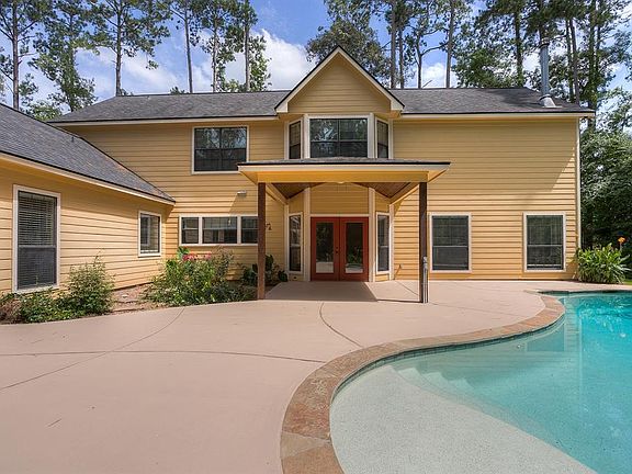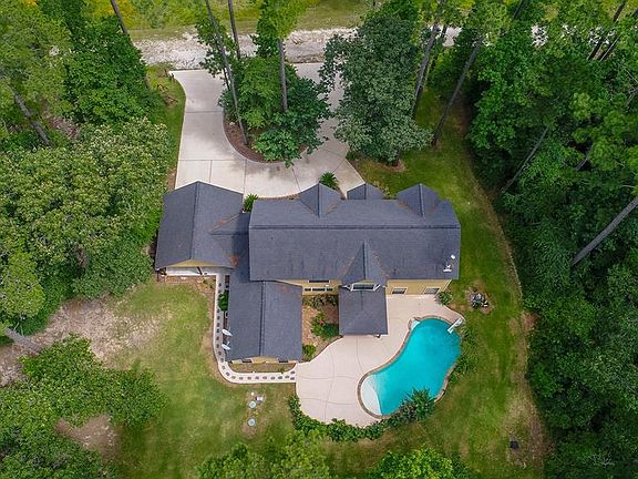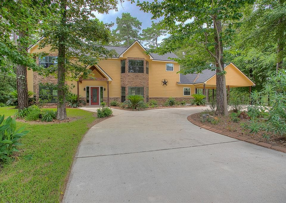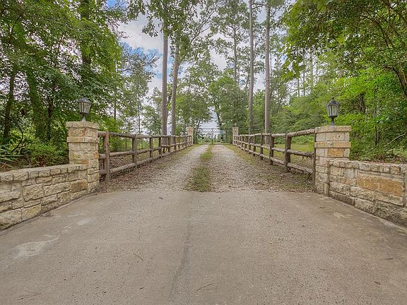 Nestled among the trees on 15 acres is an exceptional custom home built in 2011. Want the country lifestyle w/ close proximity to Houston/I-45? Stone/gated entrance leads to the main home offering a spacious floorplan. Landscaped yard w/ circular driveway, stone accents, wood burning stove & many other great features. Barndominium provides plenty of storage/shop area w/ approx 500 sf of living quarters. Ideal for those outside projects complete with Chicken houses, horse pen, pond garden area. After your daily activities are done relax in the amazing in ground back yard pool!