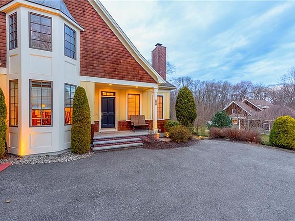 Meticulously maintained, custom built 4-5 bed, 4 bath Parker Thompson Craftsman style home on 1.6+ acre lot on cul-de-sac in Great Woods. Open flow floor plan with two story great room with full wall of glass looking out to private back yard, gourmet kitchen, first floor master suite complete with large walk in closet and steeping tub + separate shower, lower level dining room and library with built in bookshelves and fireplace. Three second floor bedrooms and two full baths. Lower level walkout perfect for entertaining or in law suite (full bath + potential bedroom). Centrally located with convenient highway access (20 minutes to Providence, 15 minutes to airport, 25 minutes to beaches, 70 minutes to Boston),close to Main St. and town utilities (water/sewer). Exterior features include lower level patio, main level deck, architecturally engineered lighting. Consistent, premium quality finishes throughout. East Greenwich has many fine homes, 62 Great Road is truly exceptional.