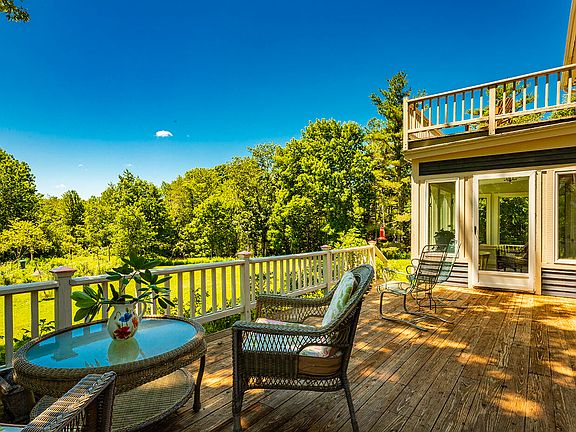 Nestled on a tranquil country lane, yet just minutes from Lincolnville Center and within 5 miles of the ocean, this multi-building homestead offers idyllic pastoral views of Camden Hills and is surrounded by Farmland Conservation. The main house features a stone fireplace in the living room, an enclosed year-round sun porch, a kitchen with pantry, two full baths, two bedrooms, on demand generator and a full basement with a workshop that has direct exterior access. A detached seasonal guest cottage with full bath is connected to the main house by a welcoming wrap-around deck, perfect for enjoying the scenic surroundings. Inside the main house, you can bask in the cozy ambiance of the wood-burning fireplace, or relax in the sun porch, which overlooks the butterfly garden and bird sanctuary. Outside, multiple levels of decks provide ample space to unwind amidst beautifully landscaped mature flower gardens. This charming property seamlessly blends comfort with natural beauty and includes a spring fed woodland pond at the beginning of a marked trail, inviting one to embrace a peaceful countryside lifestyle enhanced by picturesque vistas and plentiful recreational opportunities nearby. Less than 10 miles away, downtown Camden or Belfast beckons with their vibrant communities and diverse attractions, promising both convenience and cultural richness to enjoy.