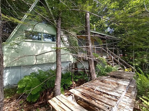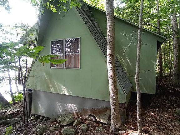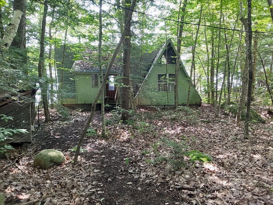 A-frame cottage literally at the waters edge on desirable Sheepscot Lake. Kitchen with dining area, open living area with vaulted ceiling and wood stove. One bedroom downstairs and a small loft above the kitchen. Southern exposure with lots of windows and a covered deck facing the lake with steps leading almost into the water. Also has a small 8'x20' a-frame garage or storage building. Well wooded gently sloping lot with 87' of lake front and 1/2 acre of land.