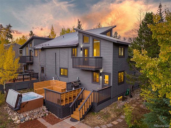 Located in one of the most beautiful settings in Frisco, this 4-bedroom, 4-bath mountain residence features a spacious southwest facing deck with outdoor hot tub, spectacular great room with vaulted ceiling, large primary suite offering stunning views, family room and a 2-garage. Many recent upgrades throughout including new flooring, paint and finishes. Adjacent to the bike path and conveniently located close to shopping, parks, the marina and easy access to 4 major ski areas in Summit County.