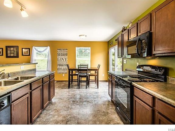 Talk about location! Inviting ranch home located in the fast-growing Wentzville School District; at the end of an oversized cul-de-sac...within walking distance to Boone Elementary and Timberland High! This 2 year young house boasts a very open floor plan with tons of natural lighting. Floor plan consists of 2 bedrooms and 2 full bathrooms. Master bedroom has walk-in closet and private master bath. Spacious living room flows nicely into the eat-in kitchen. Plenty of counter space, bar counter and pantry are a welcoming upgrade in the kitchen! Sliding glass doors lead out to a nicely poured concrete patio; great space for BBQ and patio set! Full unfinished basement has egress window and full bath rough in! Current homeowner built home with extended two car garage; enough room to fit a full size truck!
