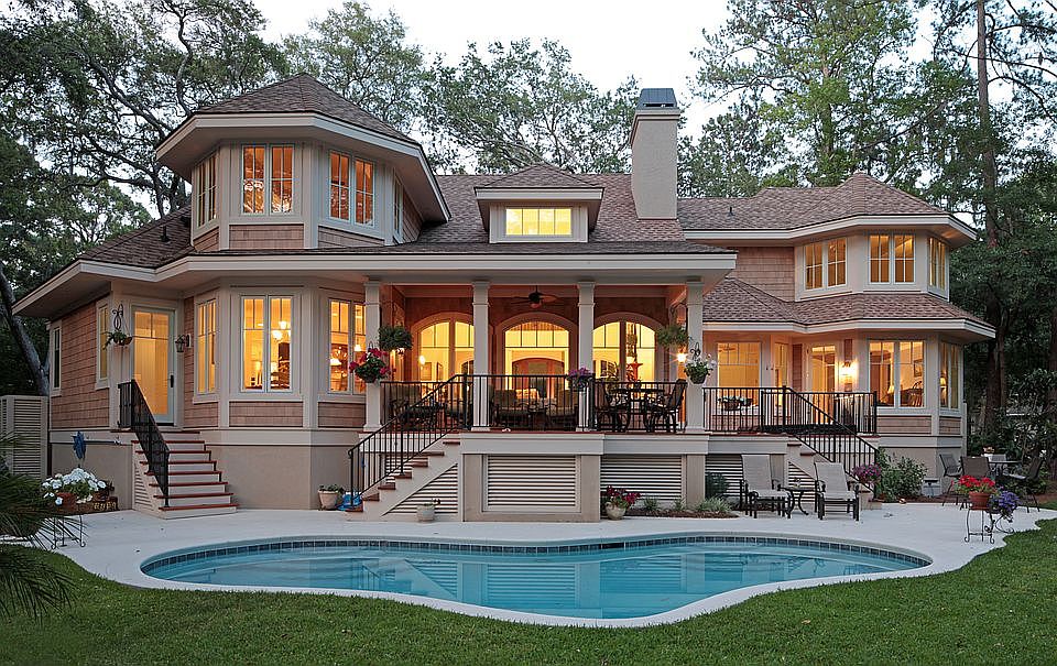 Stunning home surrounded by live oaks with the famous Harbour Town Golf Links and Lagoon view in desirable area of Sea Pines. Open living area, with vaulted ceiling and lots of windows, brining in the natural light. Oak hardwood floors throughout. Kitchen is complete with bar area, beverage cooler, walk in pantry, granite countertops and stainless steel appliances. Bedrooms are separate areas of the house, each with its own private bath. Office has a fantastic view. Enjoy sitting on the front or back covered porches. Driveways in front and back with 3 car drive through garage. Pool with bath entrance and separate hot tub on the porch.