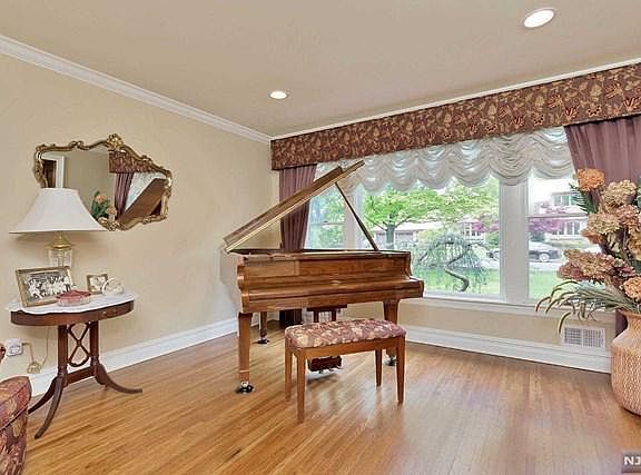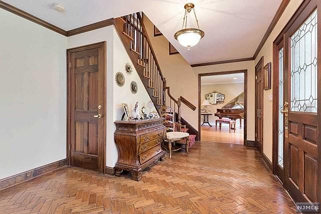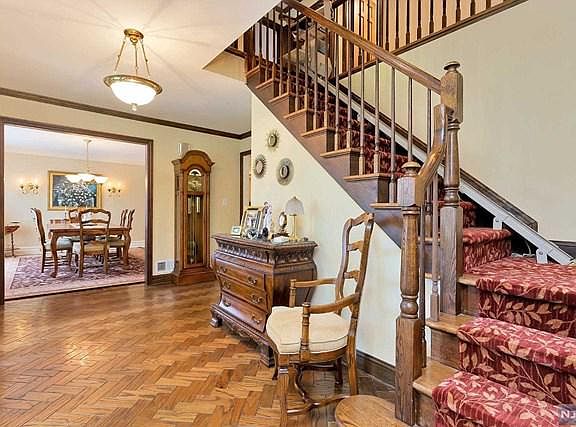 Elegance defines this exceptionally beautiful home! This stately colonial on one of the prettiest streets in Harrington Park has 5 bedrooms and 2.5 baths on a park like property(0.51 acre). It boasts an open floor plan for entertaining, grand entrance hall, sun drenched kitchen & dining area with cathedral ceilings, great family room with coffered ceilings and lots of windows for picturesque view of the beautiful backyard, gas fireplace, pocket door, one bedroom or den on the first floor, mud room off kitchen and garage. Second floor has a master suite with walk-in closet and master bathroom, 3 sizable bedrooms and main bathroom. Other features are 5 year old Heating/C/A/C, large Trex deck, 2 car garage with paver driveway, pre-finished basement for sheetrock, lots of closet spaces and much more. Harrington Park with blue ribbon school is a real gem in Bergen County. Owner has an elevation certificate.The house is not in floor zone. Pictures were taken with owner's furniture.