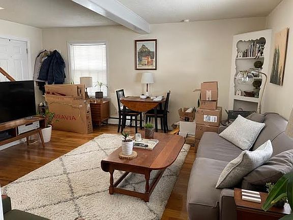 This sunny well appointed two-bedroom apartment is a commuter's dream location and within easy walking distance to downtown Topsfield. The two level unit has it own separate entrance and features hardwood floors throughout, a fully-applianced kitchen, living room, a huge bedroom (currently being used as an office/sitting room) and full bath on the first floor and another large bedroom on the second floor. The back egress to the apartment walks out to a large shared grassed area. There is off-street parking and laundry in the building. Rent includes water, exterior maintenance, snow and refuse removal and landscaping. No smokers. No pets. First & last month's rent and security deposit due at lease signing. 12 month lease term. Credit report and references required. Available March 7, 2021.