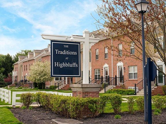 Highly desirable condo in the Traditions at Highbluffs community, just off RT 23, minutes from I-270, limitless shopping and restaurants, and in coveted Worthington School district. This beautiful brick condo with 3 finished levels of living space that is move in ready. Features swimming pool, gym, attached 2 car garage, fireplace, washer/dryer, plentiful storage and modern touches throughout the home. Main level great room with living and dining areas, spacious kitchen with real hardwood floors, new refrigerator, spacious walk-in pantry and sliding door entry to the private patio with garage access. 2 upper level bedroom suites, each with large closets, vaulted ceilings and private ensuite full baths. Finished lower level family room accented by a gas log fireplace and egress window.