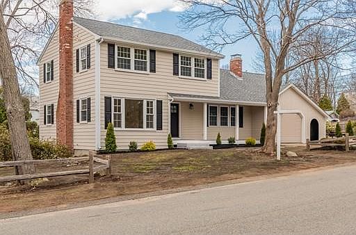 Wonderfully remodeled Colonial on a side street in the prestigious Hawthorn Road area! Conveniences of today w/ lots of charm and character. Enter from the cozy Farmer's Porch to the welcoming Foyer, sunken fireplaced Living Room, formal Dining Room w/ hutch, new stainless & quartz grey cabinet Kitchen with charming Breakfast Nook, a fireplaced Family Room with built-ins, remodeled Bath, convenient first-floor Laundry, 3-season Porch to enjoy the warm weather, and direct garage access. 3 good-sized Bedrooms up, with good closet space (Master has a walk-in), new ceramic tile Bath, and access to a spacious Attic for storage. Finished Play Room or Man Cave with the 3rd fireplace, newer Weil-McLain gas boiler, updated electrical + plumbing, and plenty of basement storage. New roof, and fresh paint inside/out. Off-street parking, shed for yard stuff, even a firewood storage bin. Corner lot close to Routes 3, 93 and 128, minutes to T/commuter rail. Priced to sell, so don't delay!