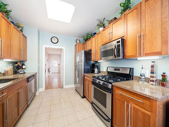 Spacious and sunny 3 bedroom/2.5 bath immaculately maintained brick townhome in Phase 2 of Port Liberte. This two level home is located on a tree lined street and convenient to the Hudson River waterfront walkway. Upon entering the foyer you will be pleasantly surprised by the spaciousness of this home. The first floor has an oversized living and dining room. Also included on this level is a powder room and expansive eat-in kitchen. The kitchen is complete with wood cabinetry, granite counters, stainless steel appliances and it opens to your private patio. This outdoor space is perfectly sized for entertaining or when you prefer to just quietly relax outside. The second level boasts three bedrooms and two full baths. The main bedroom has a walk-in closet and an ensuite marble tiled bathroom complete with a soaking tub, separate glass enclosed shower and a dual sink vanity. This townhome offers hardwood flooring throughout, central a/c, recessed lighting, 2 assigned parking spots conveniently located right behind the home and so much more! Port Liberte is a gated waterfront community with amenities that include a professional style fitness facility, two outdoor pools with amazing NYC and Statue of Liberty views, tennis courts, playground, basketball court, designated green spaces and a waterfront promenade. Onsite ferry to Downtown NYC and shuttle to Grove St Path. Don't delay. Call today for your personal tour!