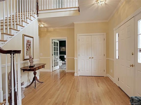Custom built by well respected builders, Wilcox & Burt, this 4,284 SF home w/3-car garage is situated on a professionally landscaped 2-acre lot and located on a cul-de-sac within a premier subdivision, minutes from the center of town. Exceptional construction and details with hardwood flooring throughout this 4 bedroom, 3 1/2 bath colonial. The updated gourmet kitchen offers an eat-in area and features newer S.S. appliances, including a gas cook-top, Sub-Zero refrigerator, granite counter-tops and plenty of custom cabinetry and built-ins accompanied by formal living and dining rooms with dentil crown molding and detailed trim on the ceilings. All bedrooms are found on the second level with the master offering a walk-in closet and an updated full bath. There's also a bonus room and 2 additional full baths on the second floor. Other features include a fireplace in the family room, first floor office, mudroom and a sun room. Outdoor entertaining comes easy with a large Trexx deck surrounded with lush landscaping and a spacious level yard. A walk-up attic offers ample storage space and a walk-out basement provides future expansion if desired. A security system, irrigation system and an automatic whole house generator provides peace of mind. This shoreline town is equidistant from Boston & New York, each an hour and a half away and well served by major highways, including I-95 and rail connections.