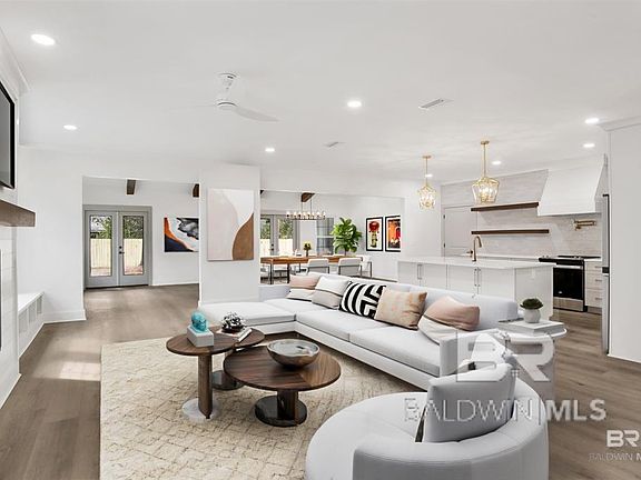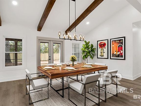 Welcome to your dream home! This beautifully designed 4 bedroom, 3 bathroom home offers 2,100 square feet of thoughtfully crafted living space with open floor plan thats perfect for modern living. Step inside to find gorgeous hardwood floors throughout, soaring vaulted ceilings with stained wood beams, and tons of natural light pouring in through large windows. The chef's kitchen is a showstopper, featuring white quartz countertops, a convenient potfiller, and ample storage in the large island for all your culinary needs. The primary suite is a true retreat with a spa-like en-suite, while the additional bedrooms offer plenty of space for family or guests. Outside, enjoy the large covered patio and fenced in backyard, great for entertaining or relaxing. Located in one of Fairhope's most sought-after areas, you're a short walk from charming boutiques, incredible restaurants, and everything downtown Fairhope has to offer. This home is GOLD FORTIFIED, providing extra peace of mind and insurance savings. Don't miss this incredible opportunity. Schedule your private showing today! Buyer to verify all information during due diligence.