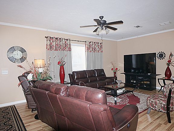 Do you want a beautiful home with the following: An open floor plan, huge master suite that includes a custom tiled shower and soaking tub, an incredible kitchen that would be a chef's delight all nestled on 1.3 acres on a quiet country road only 8 minutes to Walmart and 38 minutes to the Gulf Coast? Then this is IT!