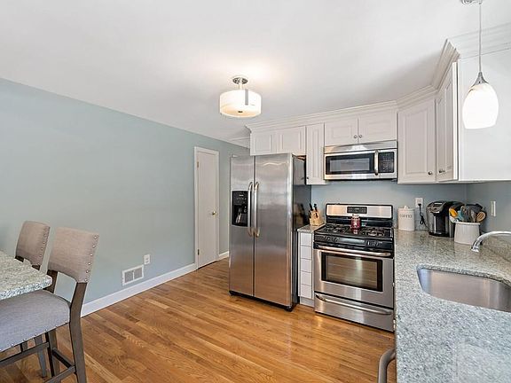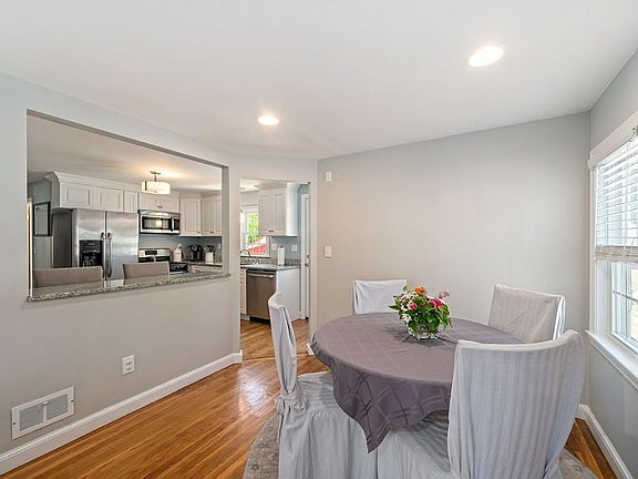 Move right in to this picture perfect ranch located on a pretty side street! Renovated in 2016, you will fall in love with the gleaming hardwood floors throughout the open concept floor plan! The ample sized living room opens up to the dining & kitchen area. The kitchen is complete w/shaker cabinets, granite counter tops, & stainless steel appliances.. just down the hall are the three spacious bedrooms and the renovated bathroom. Additional updates include a new gas furnace, Central Air system, Harvey windows, and low-maintenance vinyl siding, There is even additional living space in the partially finished basement (not included in the square footage! )!! Beautiful yard with a large patio..perfect for entertaining! Less than two miles from the Weymouth Landing/East Braintree Commuter Rail station. This home is a must see!