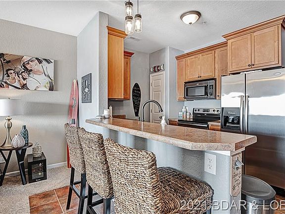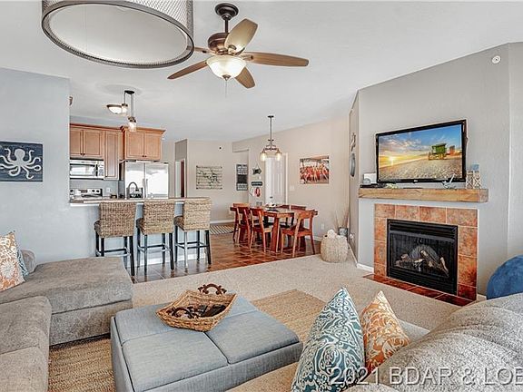 Impressive views at the Osage 4MM, larger square footage end unit-406 in Venus building, 3bed/2bath with a 12x36' boat slip! You will never get tired of the 180 degree view of the lake, where you can see the Bagnell Dam and miles the other direction! This immaculate kept condo comes turnkey with all furniture, TV's, deck furniture, BBQ grill, Arlo security cameras and more! Complex has an elevator just down the walkway so no need to worry about steps; even goes down to the pool area! Wave-break just added in 2020 and owner has paid their portion of it in full. Condo features stainless steel appliances, pantry, electric fireplace, jetted tub in master bath, large walk-in tiled shower in master bath, large laundry room w/ water filtration and shore power to dock. Come take a look today!