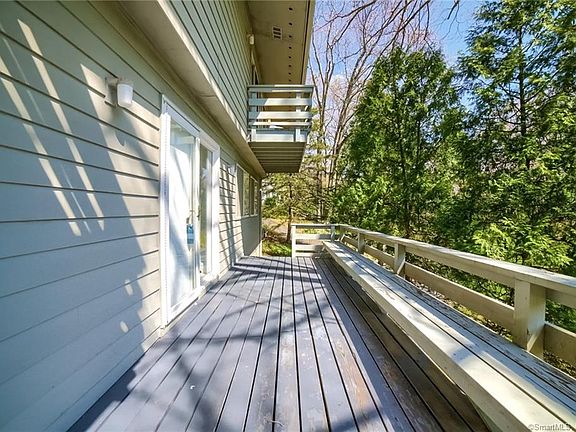 This spacious contemporary home is awash in sunlight, with sliders in nearly every room, each leading out to decks, to bring the outdoors in! The main level consists of a large living room, with hardwood floors, vaulted ceiling, beams, a wood burning stove, and sliders out to a wrap around deck. Living room adjoins a good sized dining room, also with vaulted ceiling and hardwood floors, which provides a large and inviting entertaining space. The eat in kitchen has plenty of cabinet and counter space, and also has beams, vaulted ceiling, and a skylight. Three bedrooms are also on this level, primary bedroom has a full bath, and there is a full hall bath. Each bedroom has sliders out to a balcony, and all rooms have hardwood floors. The lower level has a huge family room, with a corner fireplace, an additional bedroom, and another room that can be used as an office, or whatever suits your needs. All of these rooms have hardwood floors, and there is a combination full bath/laundry room also on this level. The home does need some updating, and cosmetic repairs/improvements, which has been taken into consideration in the price, and is being sold as is. Bring your ideas, and make this home shine. Updates include new roof 2020, and new repaved driveway 2019. The home is conveniently located to schools, shopping, and major roadways, yet is tucked away in a beautiful neighborhood setting. Great opportunity to own in Bethel! PLEASE SUBMIT HIGHEST AND BEST BY 5 PM 5/09