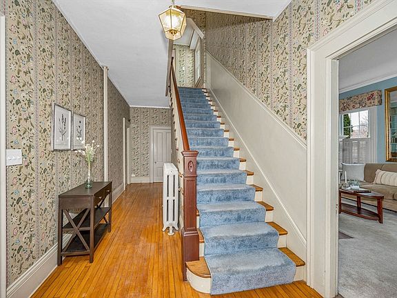 This stately home, currently used as a two-family, is situated in the heart of downtown Reading exudes timeless elegance and charm. From the moment you step inside, you'll be captivated by the grandeur of the soaring ceilings, sweeping staircase, and impressive foyer, setting the stage for a home rich in character and possibilities. Currently assessed as a two-family, this property offers incredible flexibility—ideal for rental income, multi-generational living, or an au pair suite. Owner’s Unit-The first floor features a fireplaced living room, formal dining room, spacious kitchen and half bath. Upstairs are four generously sized bedrooms and a full bath. Rental Unit-A bright & inviting one-bedroom apartment with a living room, eat-in kitchen, full bath & private deck. A three-car detached garage includes a second floor with 8ft ceilings, perfect for a home office, creative studio, gym or extra storage. Great location, just minutes from the Commuter Rail & Reading’s downtown.