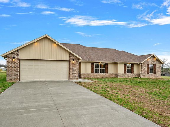 Introducing your dream home in Rogersville! This never lived in, newly built spacious residence features 4 bedrooms, 2 baths, and a 2-car garage, all situated on a generous 1-acre lot with ample space to add a shop. Nestled just 5 minutes from town within the sought-after Rogersville school district, this 2,250 sqft home offers an inviting open floor plan with split bedrooms for optimal privacy. The master suite, measuring approximately 22x12, features a vaulted ceiling, dual closets including a large walk-in, and additional storage. Indulge in relaxation with a jetted tub and 4-foot shower, complemented by tall ceilings, a double vanity with granite, and tile flooring. A generously sized, approximately 12x25 secondary bedroom provides flexibility for use as a second living area, while two additional rooms, each approximately 12x12, offer vaulted ceilings and walk-in closets. The guest bathroom impresses with a double vanity sink, granite countertops, a tub-shower combo, and tiled flooring. The heart of the home, the kitchen, shines with custom white cabinets and granite countertops. Enjoy the comfort of waterproof flooring in the living areas and plush carpeting in the bedrooms. Step outside to the expansive 30x12 covered back porch equipped with a fan, ideal for outdoor entertaining. This all-electric home with a heat pump also features a well and septic system. Don't miss the opportunity to call this exquisite property yours!
