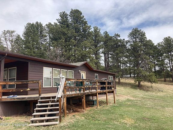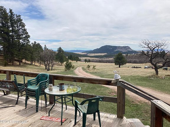 The home is superbly maintained with new roof and siding. Decks are perfect for morning, evening, entertaining or whatever your reason you choose to escape to find yourself in Sundance, Wyoming. The comfortable entrance is found at the top of wide easy climbing steps, a large slider accesses the dining/kitchen/living. Open concept with lots of glass to bring the outside in. A chefs kitchen, with appliances are perfect triangle and with island, the entertaining, family time, or just enjoying the views as dinner burns. The kitchen has a desk space as does the alcove around the corner for individual home office privacy. Off kitchen is utility room with exterior access, perfect location for the addition of your mans space, your garage. The living room is situated for advantage of keeping an...
