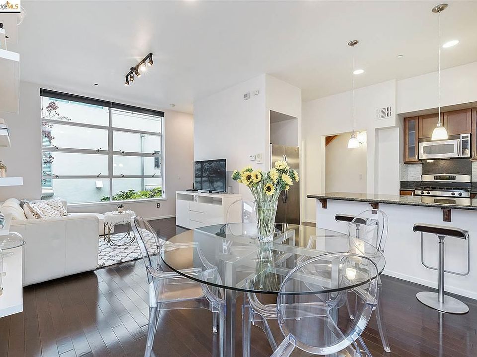 Tucked away in an Emeryville sanctuary lies 62 Loop 22, a 2 bedroom, 2.5 bathroom, tri-level home. A peaceful interior unit boasting 981+/-sf with the inclusion of a downstairs bonus space, perfect for a home office. Large south-facing windows offer an influx of natural light streaming through the main rooms. Enjoy the luxury of engineered wood floors and a upgraded kitchen to feature stone backsplash. The nicely secluded patio is perfect for morning coffee. Two Master Suites, each with private en suite bathrooms of white mosaic tiles floors and subway tile. Generously sized rooms and closets, and one master bedroom to include a private balcony. Interior access to the spacious 2-car garage and in-unit laundry. Moments from your doorstep, the Emeryville Greenway, a pedestrian and bicycle corridor which conveniently grants you simple access to Berkeley! Free shuttle bus to BART, short commute to SF.