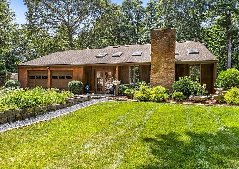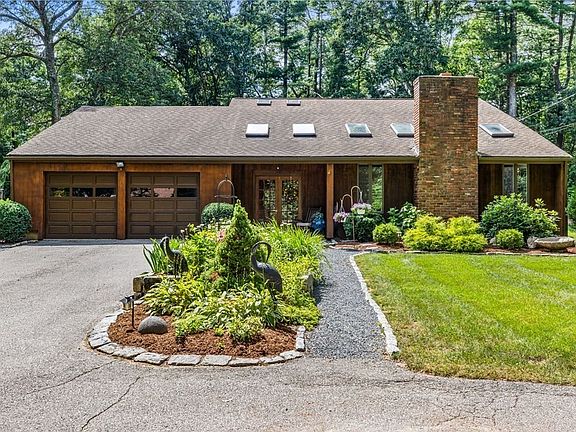 **Offers Due Monday 8/7 at 5:00PM** Nestled behind the 8th green of Pembroke Country Club, this sprawling California Contemporary Ranch offers incredible space, a flexible floor plan and amenities that include main floor primary suite, home office and two car garage. The outside courtyard features plenty sunlight & a wood stove for those chilly nights when you want to relax & look up at the stars. The interior includes hardwood floors, soaring ceilings and plenty of natural light to allow the peacefulness of nature in. The open kitchen with island is centrally located between the living room and dining spaces and the large fireplaced family room. The main floor primary w/ en suite has access to the courtyard and the backyard. Two additional bedrooms, full bath and laundry room & pantry complete the first level. The bonus second level unique for a ranch boasts 2 game rooms and home office. The professionally landscaped lush .92 private acre lot has many mature plantings.