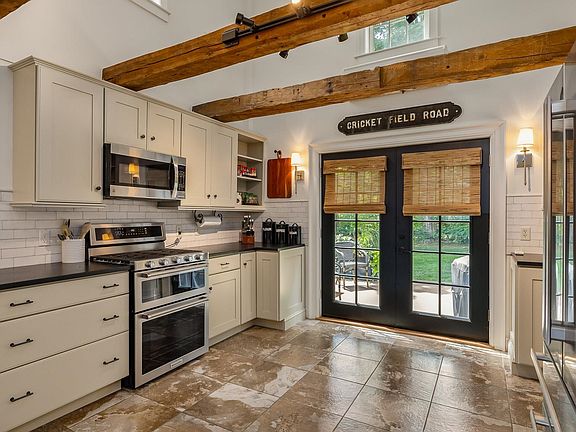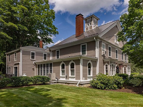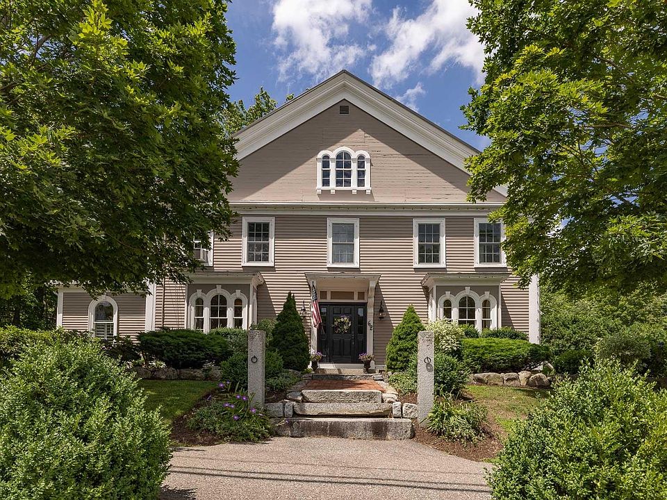 Masterful restoration of this 1795 colonial on 2.5 sprawling, park-like acres in the lovely village of Newfields. This exceptional property provides all of today's modern conveniences while boasting high ceilings, exquisite crown molding, wainscoting and 6 fireplaces among its many stunning details. A massive post and beam English barn serves as a 3+ car garage, additional storage with endless possibilities for customization. 4 beds and 3 updated baths provide ample space for family and guests. Large primary suite with expansive walk-in closet. Timeless design of the kitchen has vaulted ceilings, an oversized island on wheels, perfect for functional use or for entertaining. Large dining area and good size rooms, maintain a cozy feel, while the designer color palette will please the most discerning buyer. Radiant floors in dining and primary bathroom. Dry, clean partially finished basement. The walk up attic has a spiral wood staircase that leads to the cupola overlooking the Village to Stratham. There is a grand butterfly staircase that makes quite a statement. Every detail has been improved or preserved, just unpack and begin enjoying this piece of history. Property has direct access to the 26 mile Recreational Trail from Newfields to Manchester. Can you imagine hosting holidays here? Your guests may not want to leave! Conveniently located near major commuter routes 101,108,125, and I-95, less than 1 hour to major airports, UNH, Exeter and so much more.
