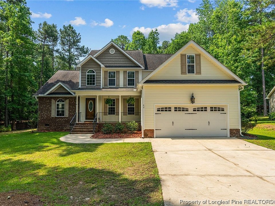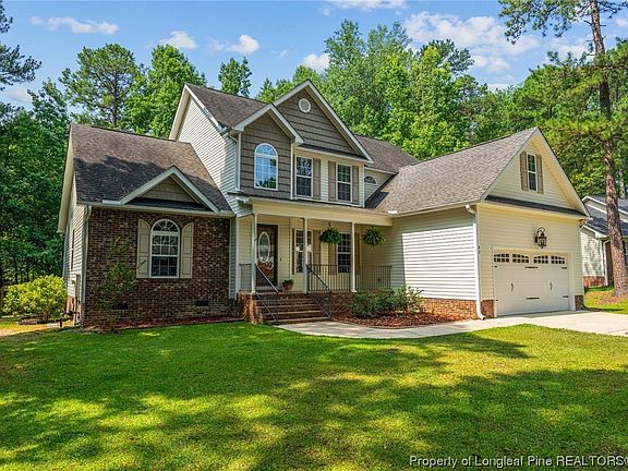 STUNNING 4BA/2.5BA home in the desirable community of CAROLINA LAKES. Conveniently located to Fort Bragg/Liberty, shopping, dining and schools. As you enter the home you'll be greeted by views of the gorgeous cathedral living room ceiling and open concept floor plan! In the living room you'll enjoy cold winter nights cozied up next to the fireplace! You'll fall in love with all of the carefully selected details of this home including stunning accent walls throughout, plantation blinds, updated lighting fixtures, built in shelving in all the right places, new carpet in the primary suite, updated paint in many rooms, all new flooring on the second floor, modern subway tile backsplash and so much more! Master bedroom located on main floor and 3 additional, generously sized bedrooms located on the second floor. The backyard has a fantastic view of a pond just behind the property! You'll want to spend all your free time on the screened in porch, which overlooks the huge fenced in yard!