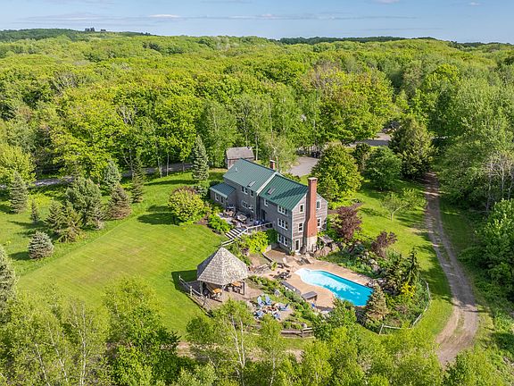 Mountain sunrises, westerly sunsets, sweeping lawns and mature gardens complimented by a salt-filtered in-ground pool with a deck-side custom designed outdoor entertainment setting and dining area ignite the captivation of this custom post and beam home. Enter into country living upon an elevated, spacious three+ acre lot just three miles from Rockport Harbor. Quiet yet easily accessible this home offers spacious rooms with an open design theme while creating specific spaces within. The cooks kitchen has a classic commercial stove in an oversized island that opens to a sitting room centered around a cozy wood-stove. Beyond the dining room enjoy a roaring fire in the classic stone fireplace while appreciating the scenery from the numerous oversized windows. The separate den allows for quiet reading, family game nights or a great in-home office. Three spacious bedrooms include a double-use designed bedroom and a primary bed with a its specific bath. The second floor laundry room gives room for cleaning supplies and storage as well. Enjoy private quiet nights off the oversized back deck and entertain with friends and family enjoying the poolside features, all within moments to Camden and Rockport villages and a hop skip and jump to Rockland and Augusta access routes. Part of a larger parcel, address will be 60 Meadow Street. Taxes to be determined. Large living room and primary bedroom additions built in 2005.