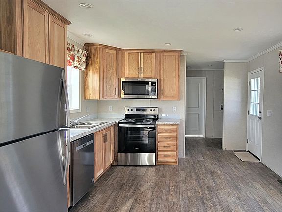 ***2ND MONTH LOT RENT FREE IF SETTLE BEFORE 5/1/23*** Brand new 60-foot manufactured home with a 12-month bumper to bumper manufacturer warranty and an additional six year warranty. Home construction is 2 X 6 for low heat costs. The lot is on a quiet street and a nice backyard with no neighbors to the rear. There are 2 bedrooms and 2 full baths. The kitchen is beautiful with extra tall cabinets. The living room and the kitchen have attractive built is shelves. The heating is propane and the windows are energy efficient. The home comes with recessed lighting and stainless steel appliances. Valley View Community's monthly rent is currently $428.5 and includes sewer and trash. Great price on a new home and low monthly expenses. 2ND MONTH LOT RENT FREE IF SETTLE BEFORE 5/1/23 . Tax estimate base on a similar model's taxes 2022.