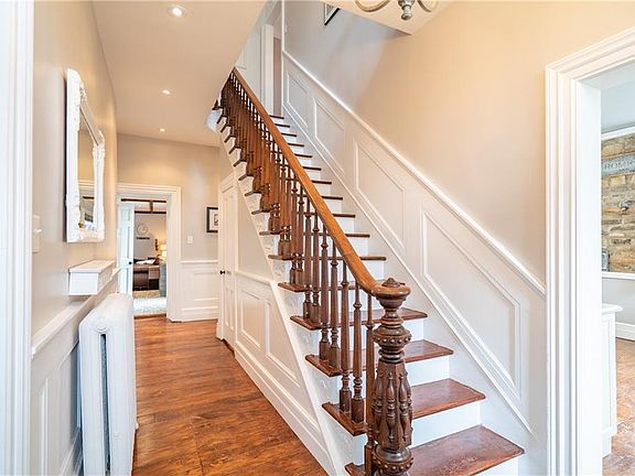 Historical award-winning stone home located in Waterdown's North Heritage District. This is the original "Doctor's House"! Home features centre hall plan with 9' ceilings, a wood fireplace, beautiful kitchen, amazing plank floors and a large family room addition at the back with private master retreat on the second level. This home has many updates while keeping the incredible feel of the original stone home. Enjoy the rear deck overlooking a huge private yard with in-ground pool and charming barn with a second-floor play space. Just steps to downtown and everything it has to offer including shopping, restaurants, banking and more! Don't miss out on this rare opportunity to own an exceptional piece of Waterdown history. Room sizes approximate. Call to arrange a virtual showing. Don't be TOO LATE*! *REG TM. RSA.