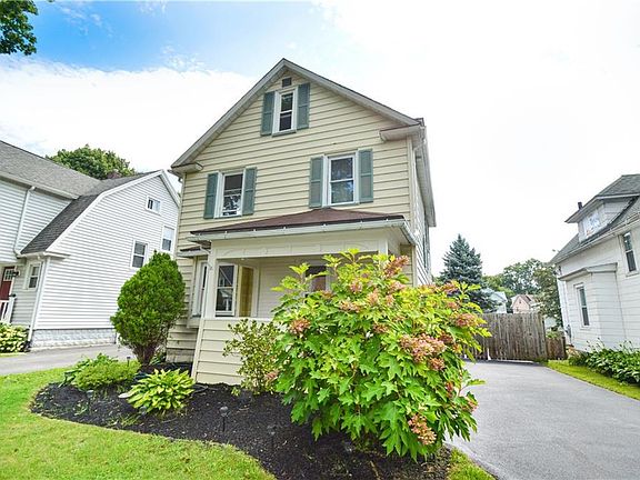 A beautiful oak leaf hydrangea welcomes you to the open front porch of this charming 2 story home in desirable North Winton Village Neighborhood. The spacious foyer provides access to the nicely sized living room that flows into the dining room. The updated kitchen has stainless appliances and laminate flooring. The 2nd floor has 3 bedrooms and full bath. The 3rd floor is a bonus with a finished room and loads of storage that is not included in the square footage. As you step onto the rear deck you will be blown away by the exquisitely landscaped and fully fences private backyard. A perfect place to entertain or relax in the beauty of nature. Tankless water system, 97% efficiency furnace and insulation are 12 years old; energy audit was done and all recommendations were satisfied. You'll love this walking friendly neighborhood which offers light shopping, restaurants and ease of access to all points of Rochester! Delayed Negotiation-Offers will be reviewed Sun. 8/16 at 4pm
